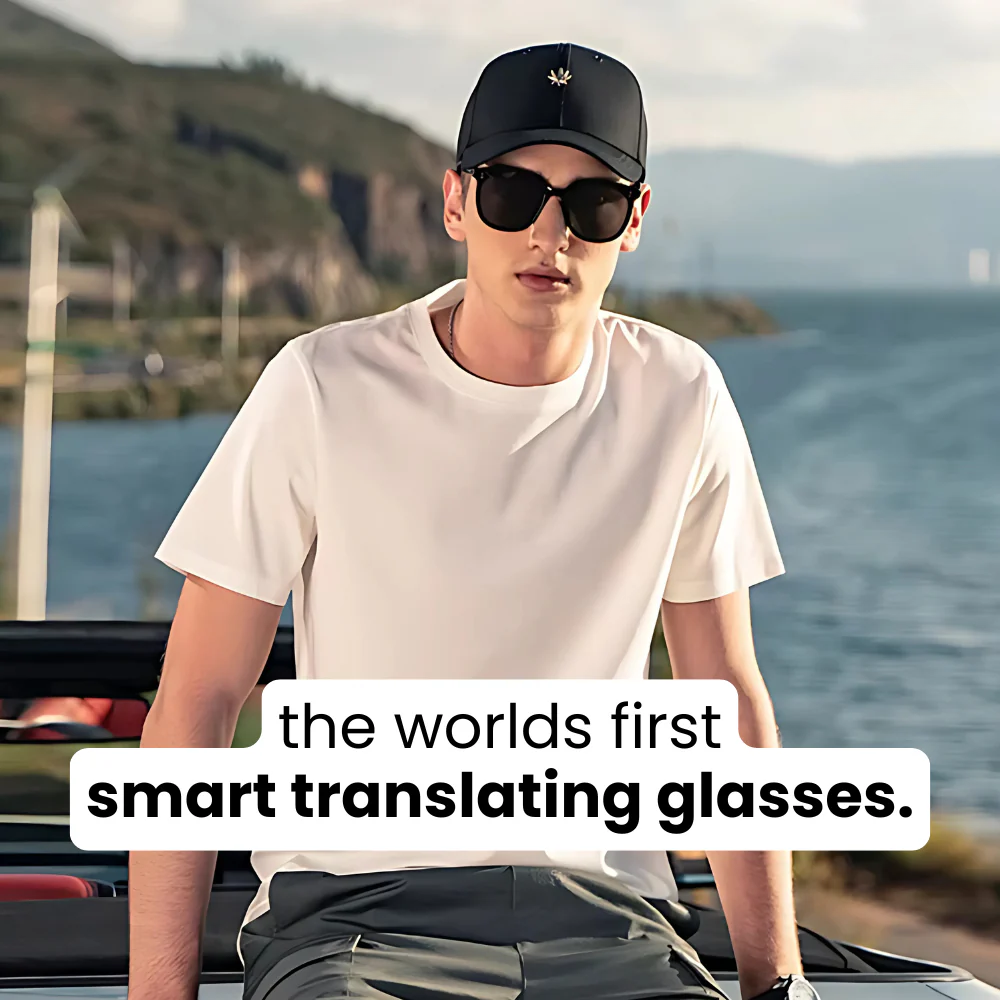 OrveaLens™ looks like a sleek pair of everyday sunglasses, but hidden inside is powerful AI that delivers seamless, real-time translation.